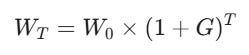 This is, in essence, compounding, We want to find the single rate G (Geometric Growth) that represents this messy path: