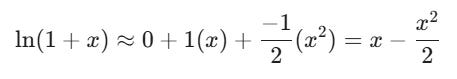 Then, taking our Taylor approximation from above (x-(x2/2)), we can substitute: