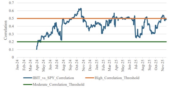This integration suggests that as crypto goes mainstream, it is losing its unique hedging properties.